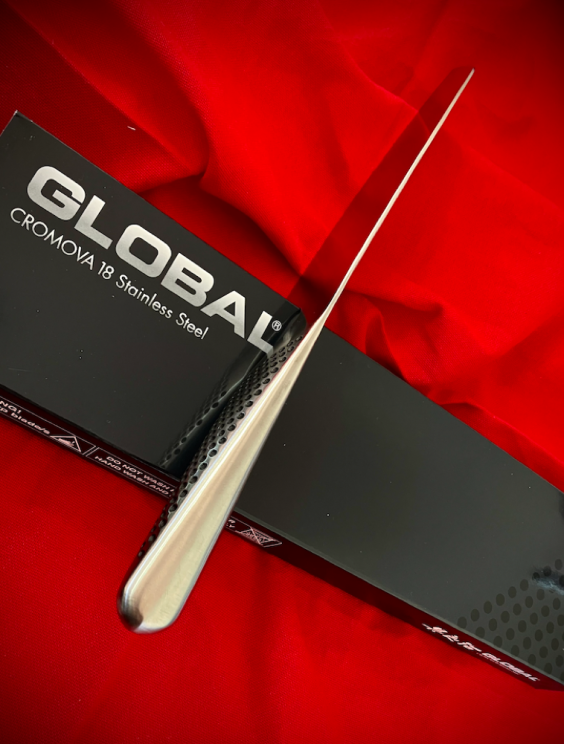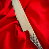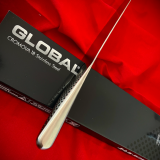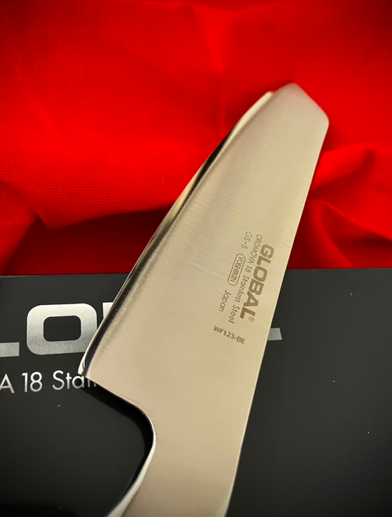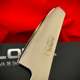 The Global GS -5 140mm is always the go to vegetable or make that anything knife for comfort and feel.There is a nice width and thinness in the blade and just takes a beautiful edge.Great edge retention also coming in at a very nice hardness maxing out at 59 Rockwell C.A favourite handle by many bringing the knuckles away from the board and also allowing for smaller hands.Always love sharpening this knife with its very consistent temper and accuracy of manufacturing in Japan. (of course).
