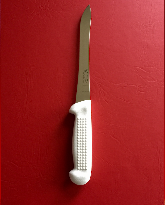 The 18cm high flex blade reaches a incredible sharpness with its 1mm thick blade at the spine of the knife.Its a little wider than most filleting knives of this size and lends itself to different sharpening techniques and much longer service life.Ogg Sharpening always loves design where it matters to achieve results for a variety of uses.Victory knives have been made in New Zealand since 1927 and provide a very extensive range of knives. There are so many profiles to suit the likes of Butchers, Fishermen & Rural folk to name but a few. At a Rockwell C hardness of 57, they are slightly higher which gives rise to a durable and very sharp edge. The handles have a great feel and not completely smooth, ideal for the above industries. Much thought has gone into these knives with sometimes only minor differences in profiles so there is a Victory knife that pleases everyone.